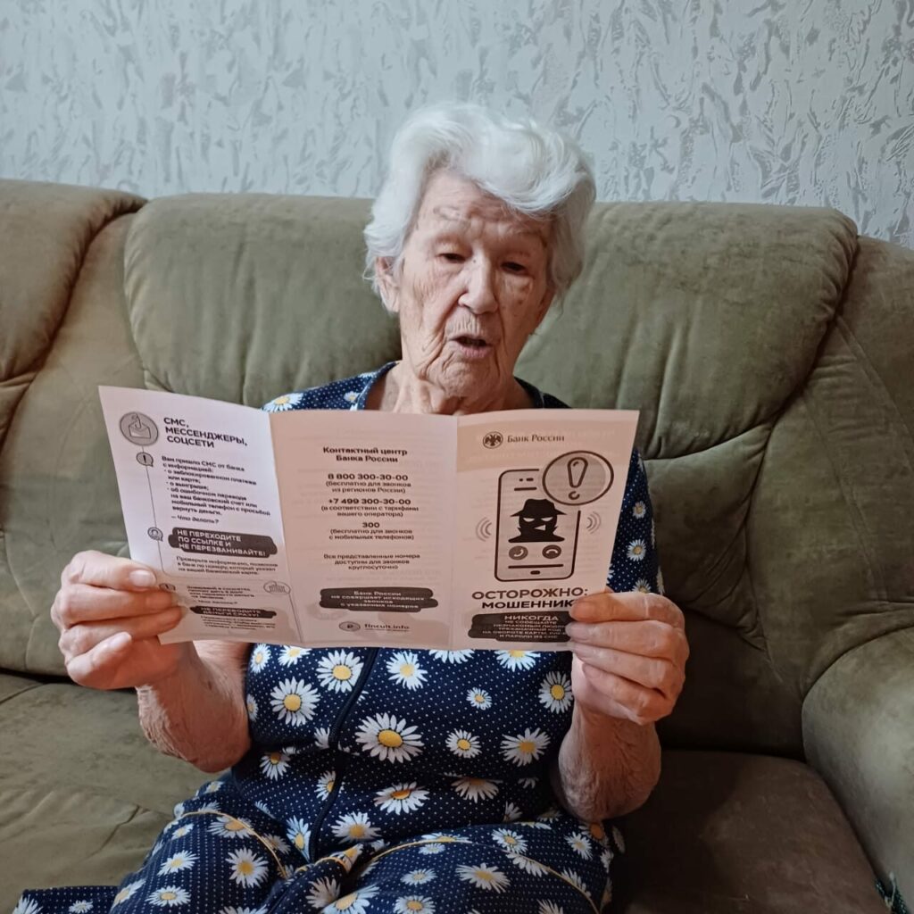 В рамках мероприятий между получателями социальных услуг распространены буклеты по профилактике телефонного мошенничества, с социальными работниками проведен методический час, который включил в себя информационный материал на тему «Как сделать ваш пароль безопасным», методичку «Что обычно говорят мошенники», ознакомление со ссылками на информационные ресурсы проекта: https://sam.mos.ru/, https://www.gosuslugi.ru/cybersecurity, https://киберзож.рф/.